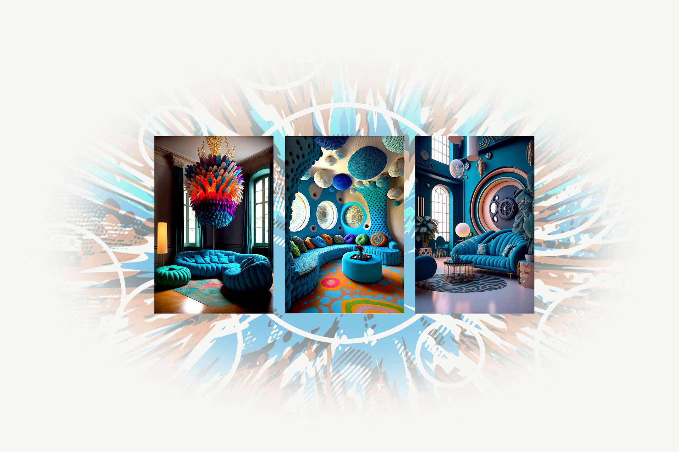 When color and form work together, the design can evolve and transform into a variety of aesthetics. These bold three-dimensional shapes become the focus with the muted colors used in the interiors below. Though the shades are carefully curated, they refrain from overpowering the extraordinary textures and energetic designs.