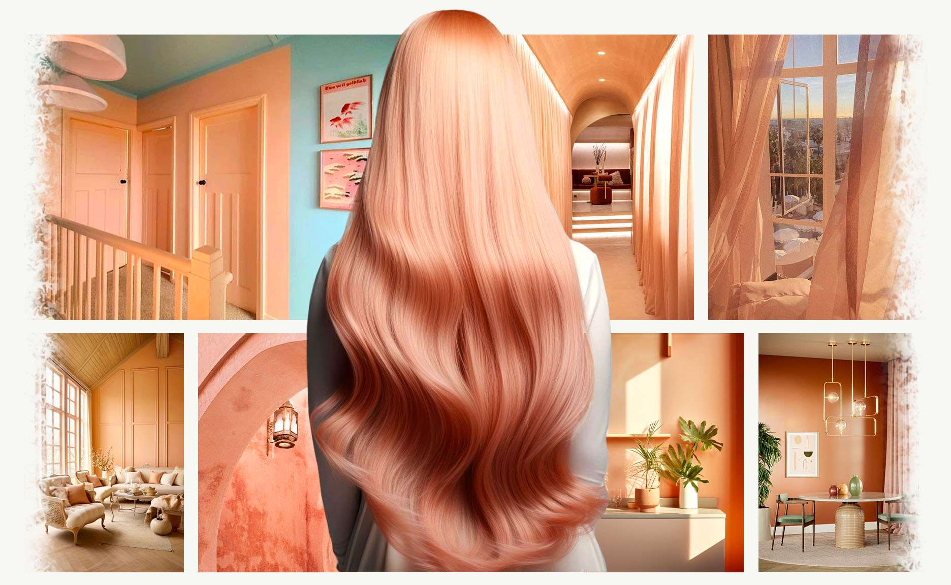 For example, similar to a head-to-toe monochromatic fashion ensemble, painting an entire wall or room the color of Peach Fuzz surrounds the soul and the senses with a welcoming comfort. The peachy ambiance is perfect for a gentle, yet lively, energy in your home, condo, apartment, or vacation beach house. Sweet elegance mixes with a new modernity that elevates the space in a way that looks expensive while feeling soothing.